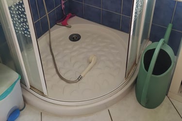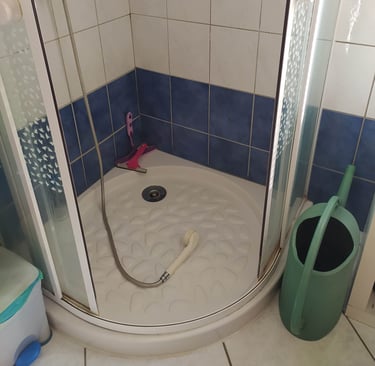 un arrosoir à coté de la douche pour récupérer l'eau pas encore chaude