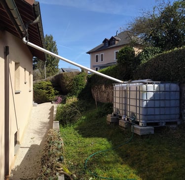 3000 litres de récupérateur d'eau (dont 1 alimenté par grativation)