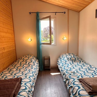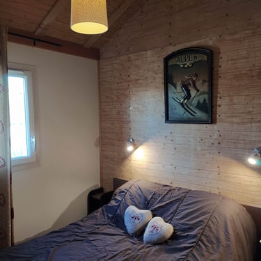Spécificité du chalet "lac" : la 2e chambre possède 2 petits lits (80cm) qui peuvent être rapprocher pour faire un grand lit 160x190