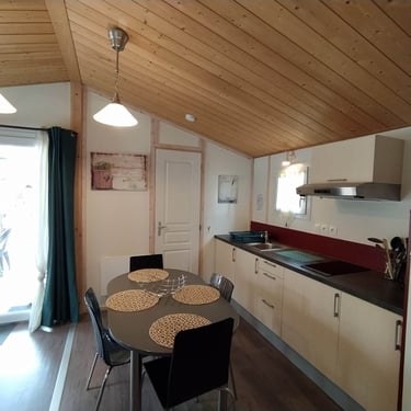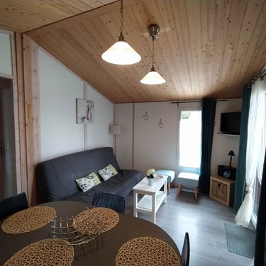 Nos chalets sont très bien isolés, ils comportent un séjour/cuisine, 2 chambres, salle de bains, WC séparés, une terrasse et 2 places de parking.