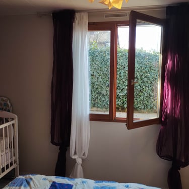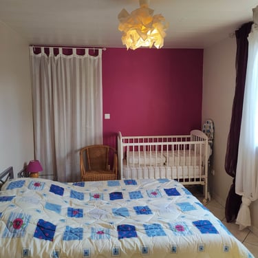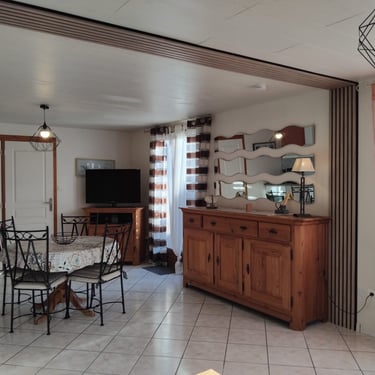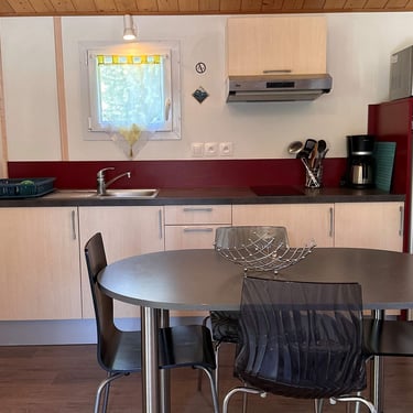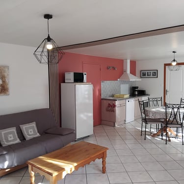 Ce rez de jardin est notre plus grand gite, il est très bien isolé et bénéficie d'un plancher chauffant basse température. En été il est tempéré du fait qu'il jouxte notre garage coté nord
